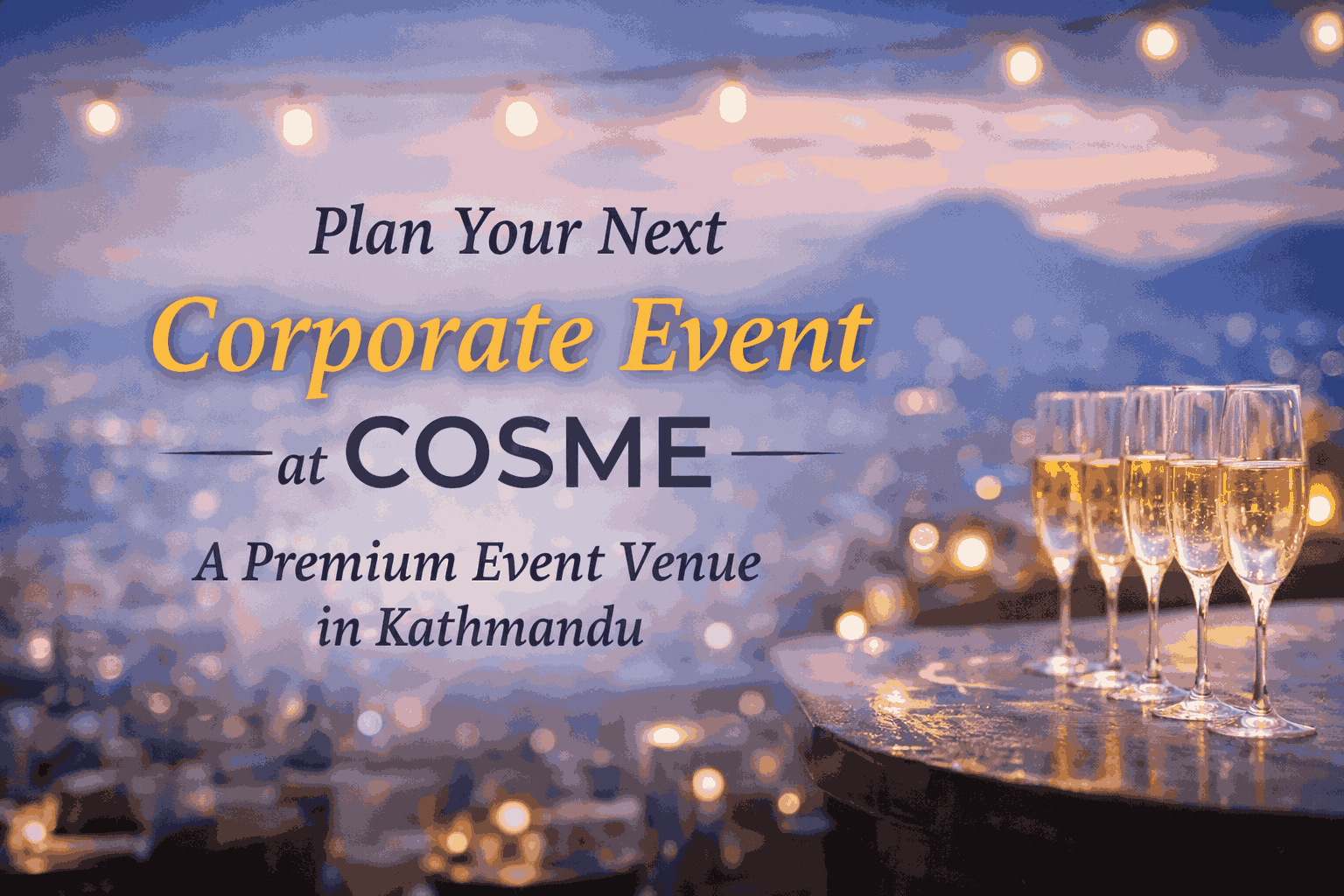 COSME stands out for its elevated views of Kathmandu, modern design, and warm lighting that enhances both daytime and evening celebrations.